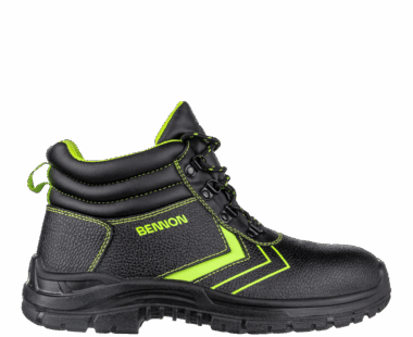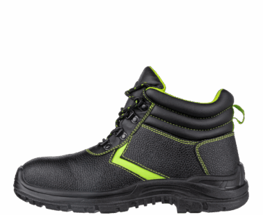 Zabezpieczenia, które chronią stopy przed uszkodzeniami mechanicznymi, to kompozytowy podnosek i wkładka kevlarowa, które zapobiegają przebiciu stopy, a także odblaskowe elementy sznurowania, które zapewniają widoczność po ekspozycji na światło w półmroku i ciemności.